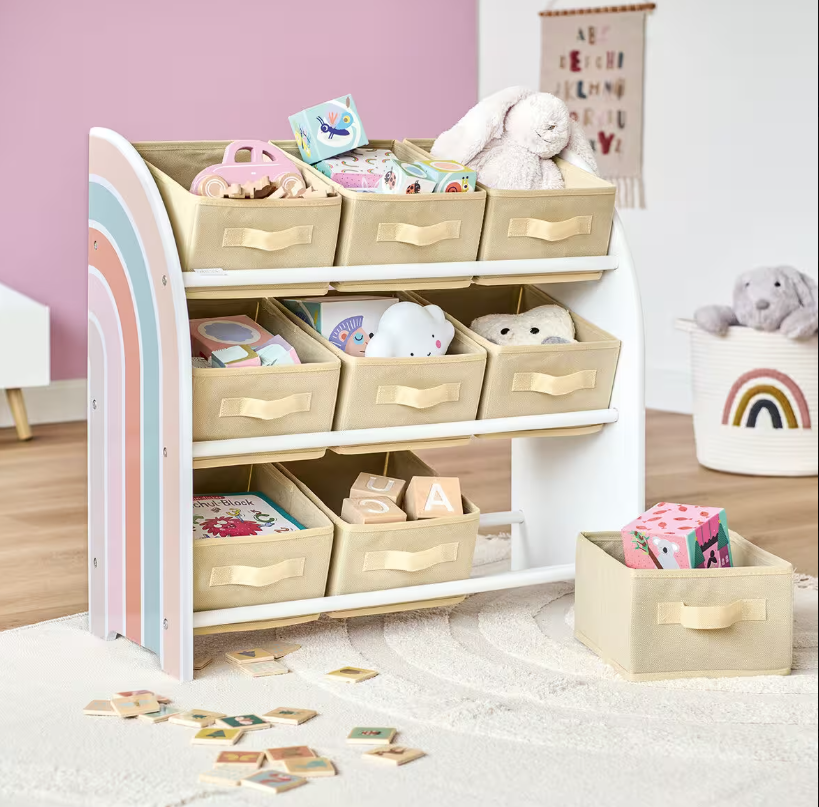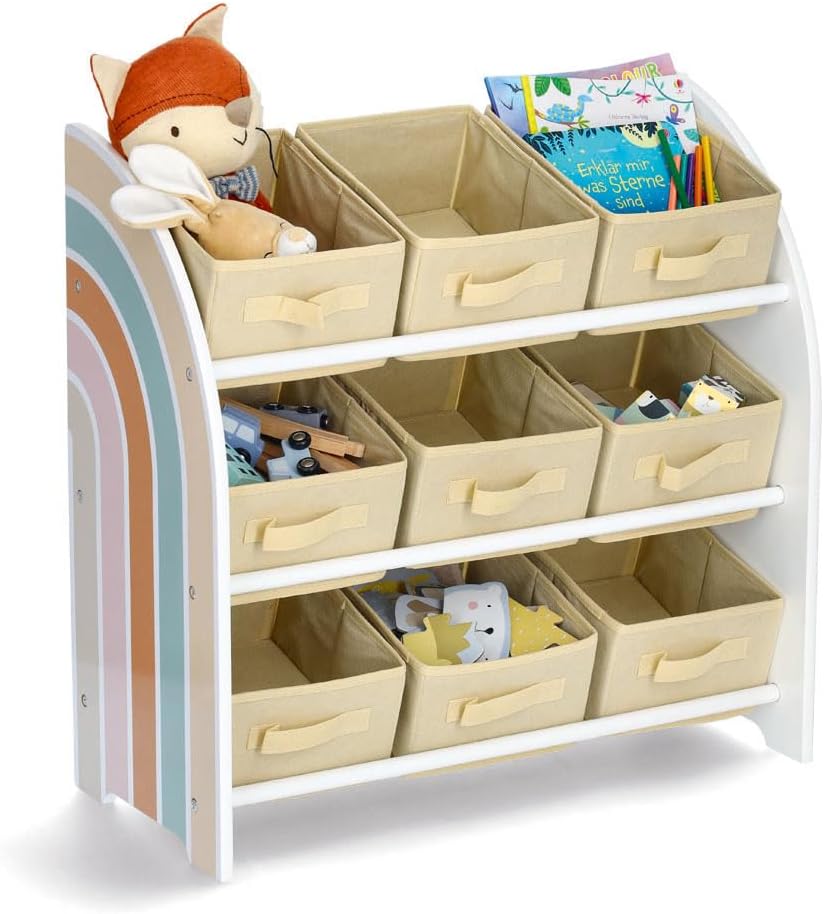 Dětská regál Duha, 3 police s 9 boxy, MDF / textil