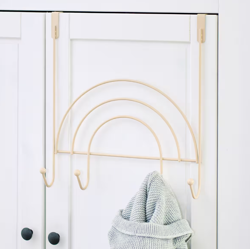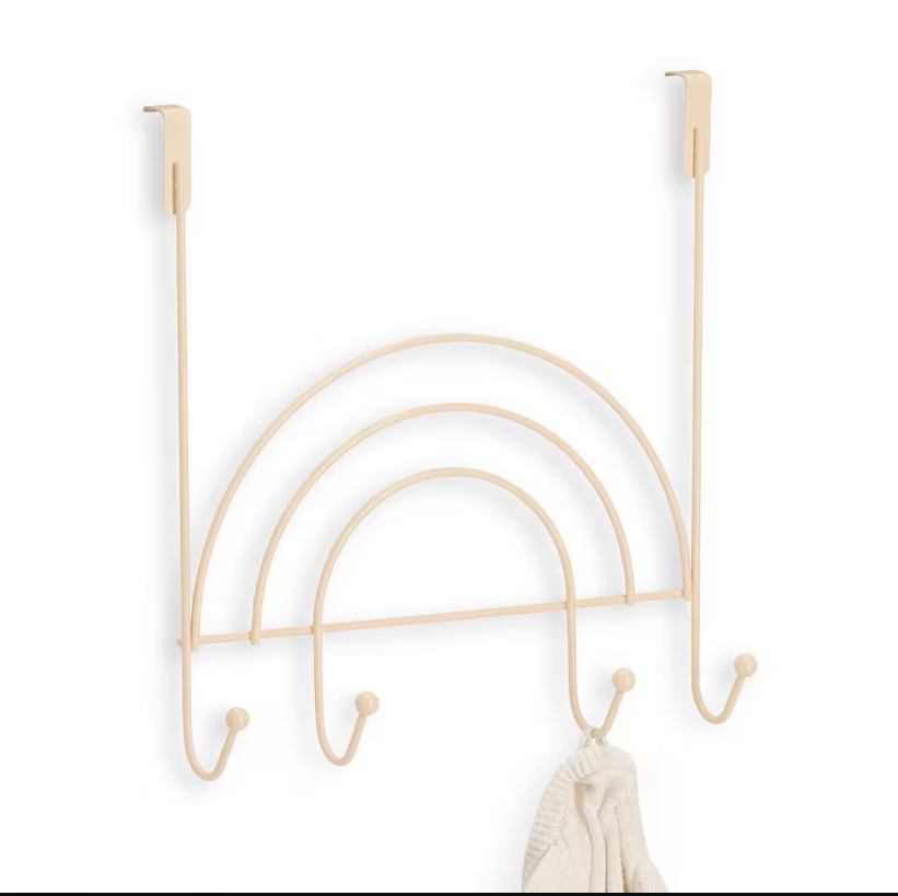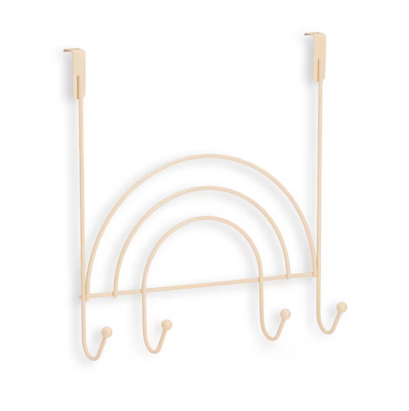 Dětský věšák na dveře, se 4 háčky, Duha, kovový, béžový