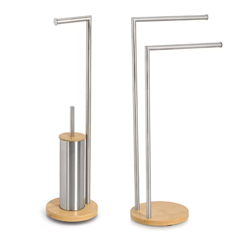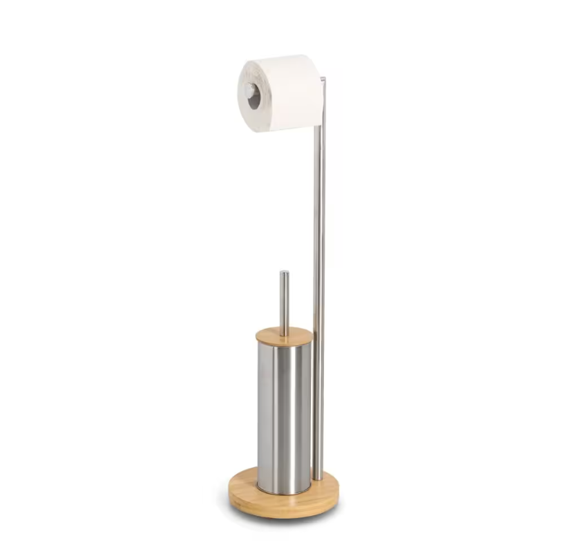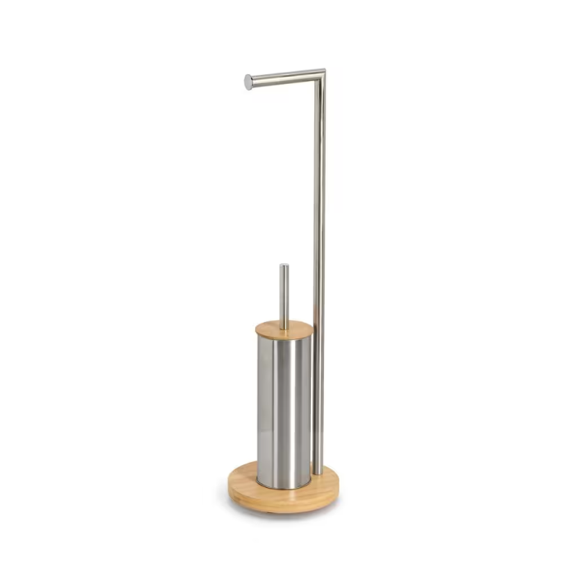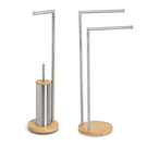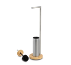Stojan na toaletní papír a WC kartáč, kovový, nerez/bambus