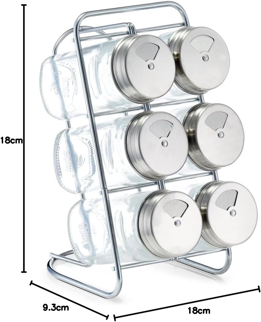 Tato praktická sada se skládá ze šesti kořenek a praktického stojanu pro přehledné uložení. Tyto kořenky jsou nezbytné v každé domácnosti, protože si je můžete naplnit svým oblíbeným kořením. Díky víku se dvěma různými velikostmi otvorů můžete obsah přesně dávkovat. Průhledné sklo vám umožňuje snadno vidět obsah a hladinu naplnění za všech okolností.
