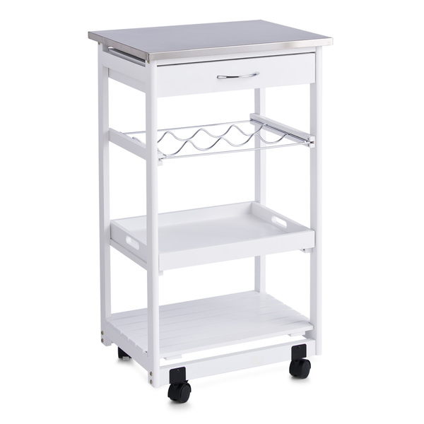Kuchyňský vozík s nerezovou deskou, bílý
