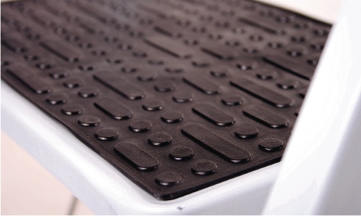 Kovová nášlapná plocha, pogumovaná úprava povrch zabraňuje uklouznutí. Protiskluzné nášlapy velikosti 20x30cm.