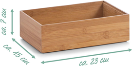 S tímto boxem vyrobeným z vysoce kvalitního bambusu vnesete do svého domova úžasný pořádek. Předměty denní potřeby jsou uloženy přehledně a mimo dohled. Pro úsporu místa můžete naskládat několik úložných boxů na sebe. Díky vysoké kvalitě a stabilitě se budete z boxu těšit po dlouhou dobu. Krabice organizéru je k dispozici v různých velikostech.