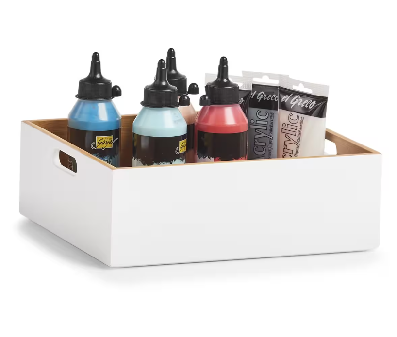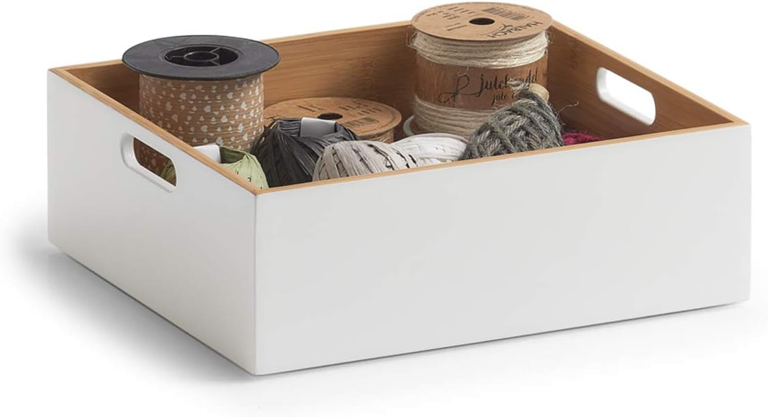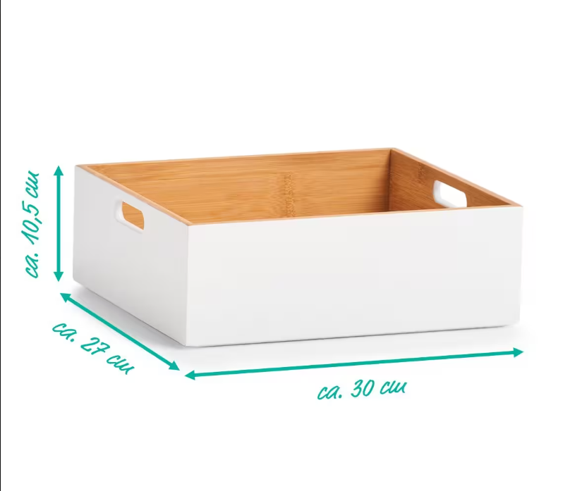 Úložná krabice, box. bambus, bílý, 30 x 27 x 10,5 cm