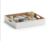 Tato krásná, plochá krabice z udržitelného bambusu bez námahy vytvoří pořádek všude, kde se použije. Severský design kombinuje čistou bílou s teplou hnědou barvou přírodního bambusu. Boční otvory usnadňují přenášení boxu, což je obzvláště užitečné při stohování více krabic na sebe. K dispozici je také úložná krabice s vyššími bočnicemi. Krabici je nejlepší čistit vlhkým hadříkem. Bambus je díky svému rychlému růstu považován za obzvláště udržitelnou surovinu.