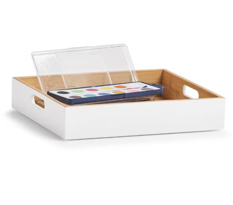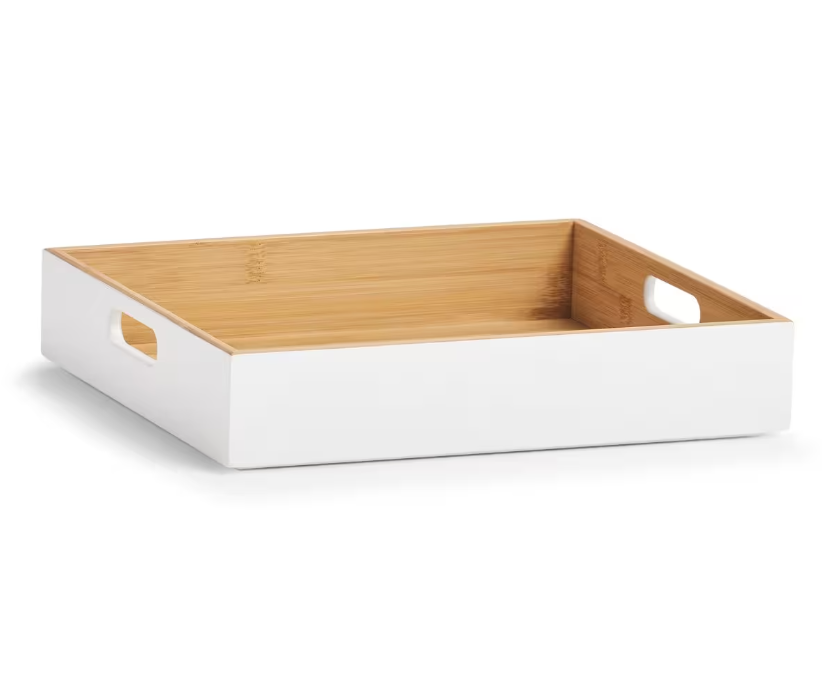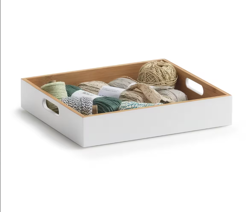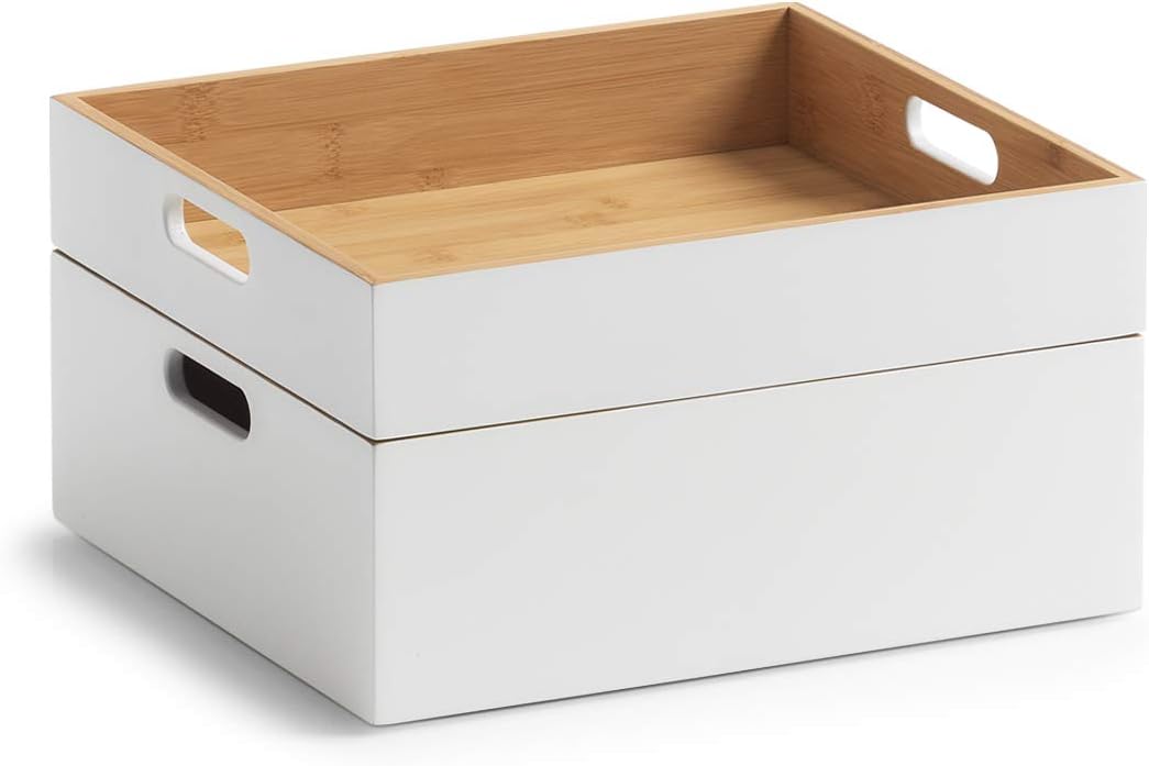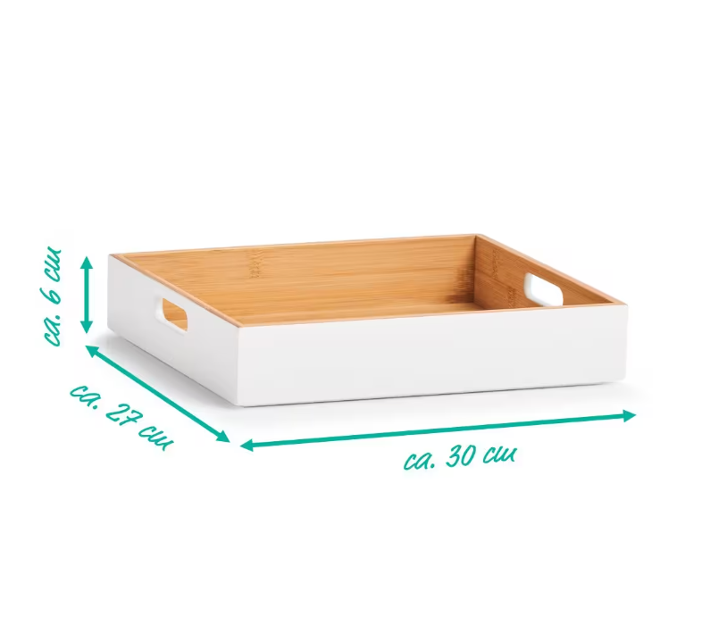 Úložná krabice, box. bambus, bílý, 30 x 27 x 6 cm